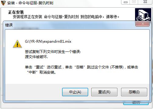 疑难解答目录2. 游戏安装问题独立安装包使用注意事项本页总览游戏安装问题返回目录独立安装包使用注意事项1、下载安装包最新版本下载2、安装之前要关闭杀软杀软会拦截安装包执行安装程序,影响或者阻止安装3、不要覆盖安装安装包是独立的,安装好即可游玩,不需要覆盖在RA2或者YR上安装过程中显示错误1006安装过程中弹出该弹窗,请关闭安装程序并且检查杀软是否拦截安装包,确认关闭杀软之后再安装一次安装之前请关闭杀软,以防更多问题的发生安装过程中提示源文件损坏安装包下载过程中由于网络问题导致损坏,重新下载安装即可。返回目录